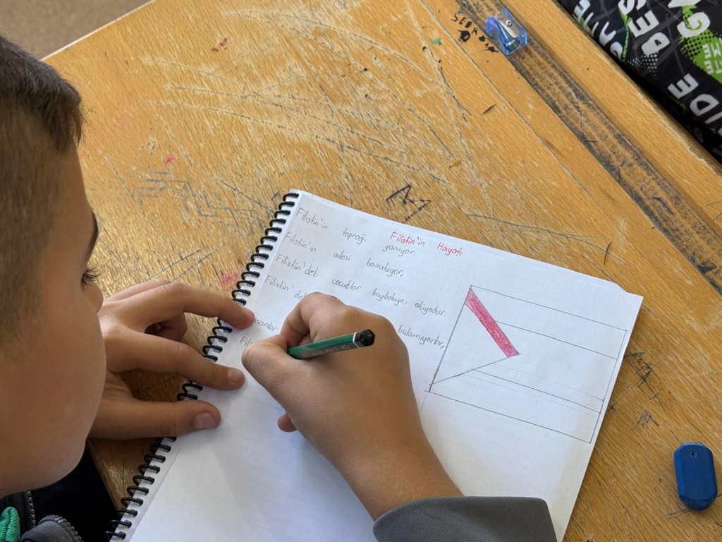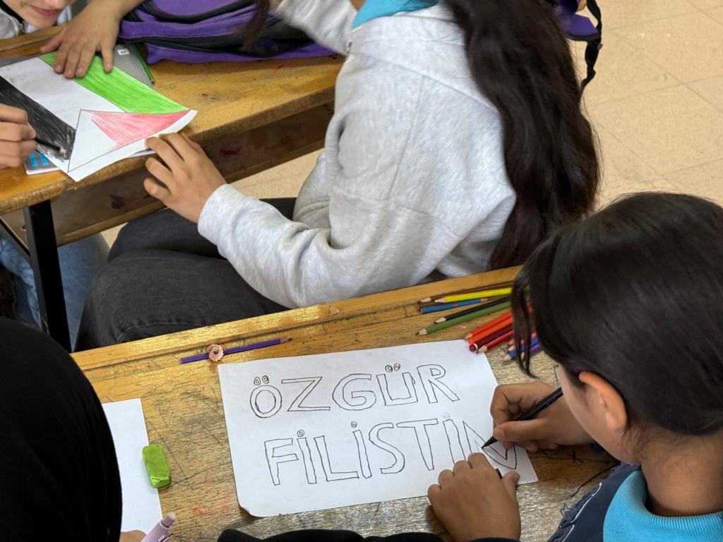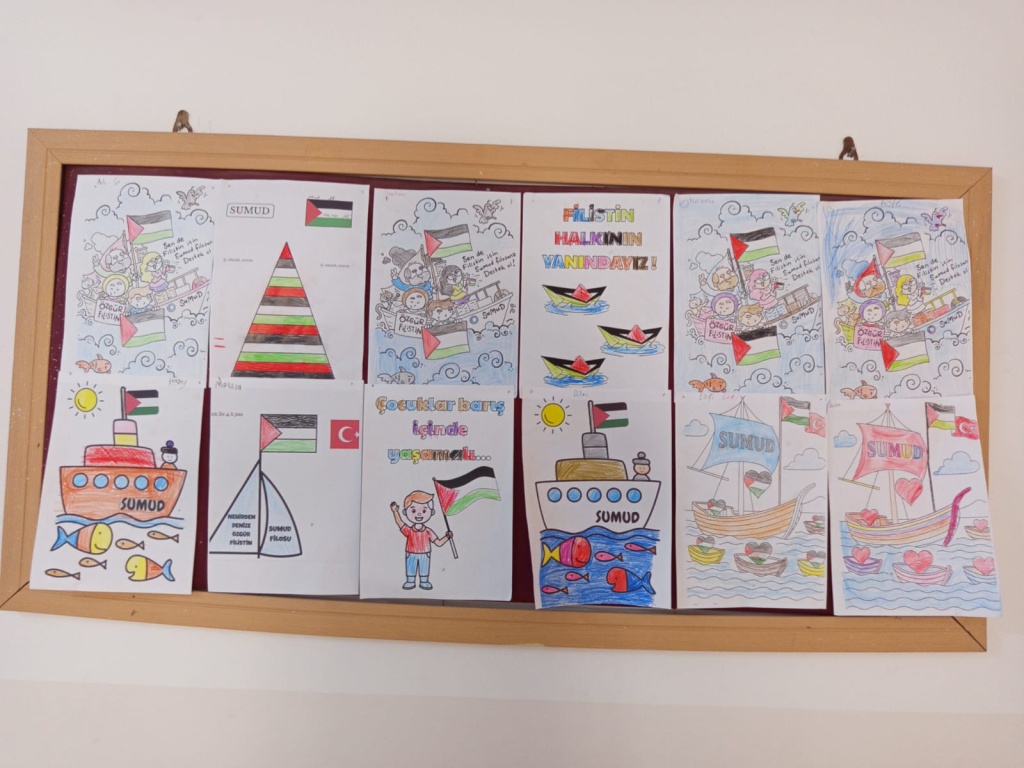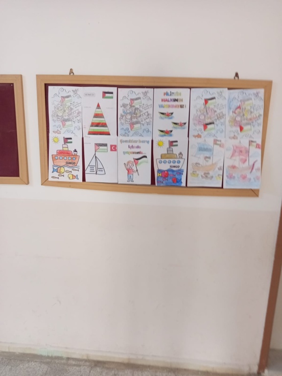Okulumuz öğrencileriyle birlikte Filistin'de yaşanan zulme karşı farkındalık etkinliği yapıldı. Etkinlik sırasında öğrencilerin hazırlamış olduğu görsel çalışmalar okul ve sınıf panolarında sergilendi.